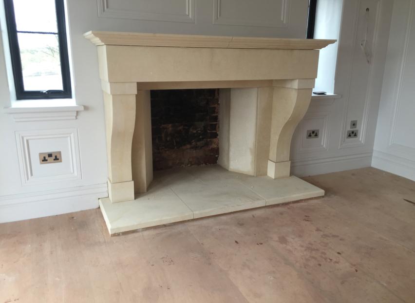 This fireplace design is inspired by a typical 18th century French fireplace. This style with variations is relatively comen in old Chateaux's and grand country houses in France. We love it because of its modest use of simple forms, like the curved corbel jambs and mouldings.
