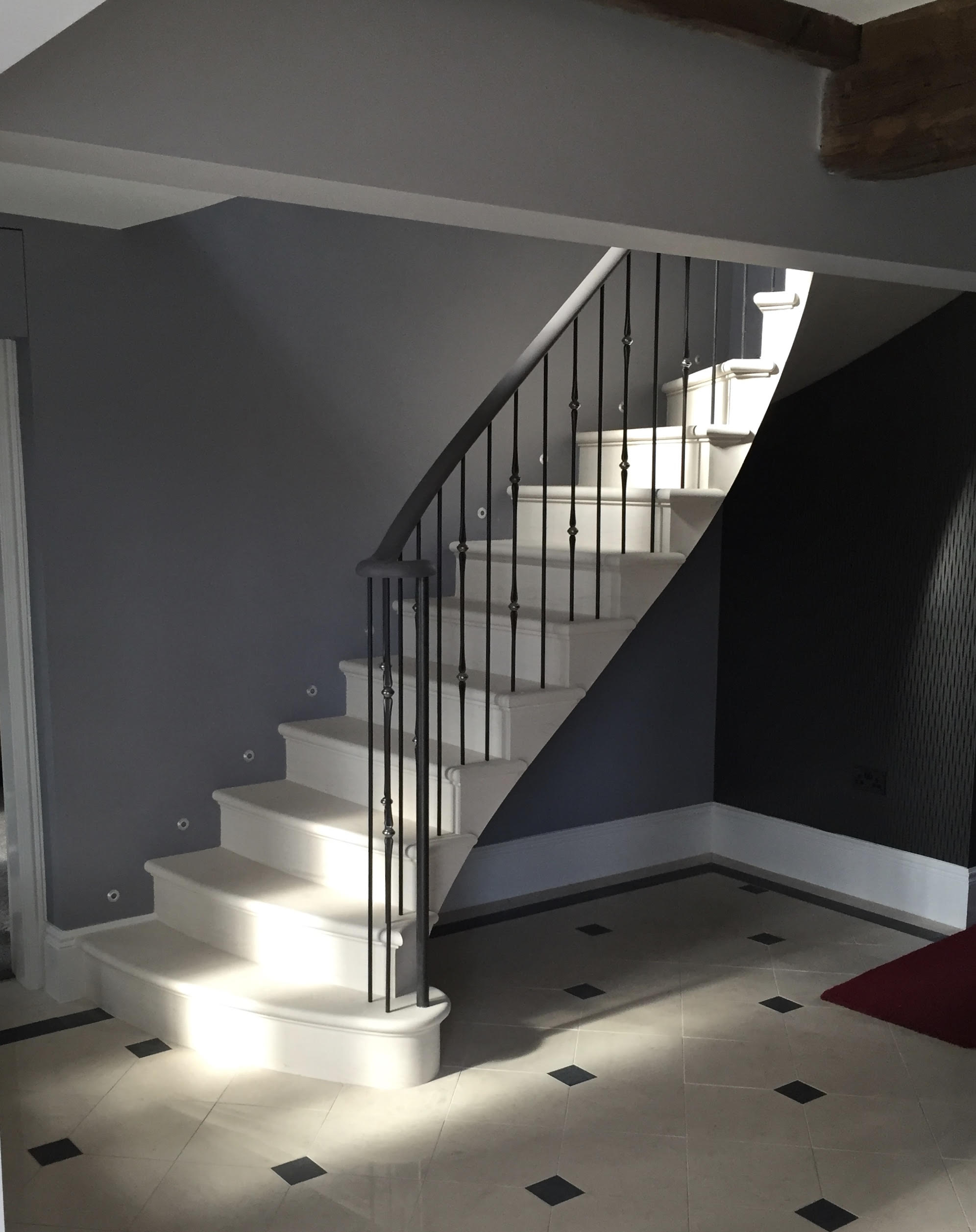 This is a beautiful example of a relatively small cantilevered limestone staircase. We had the privilege to create this staircase for a client very local to us here in Leicestershire.