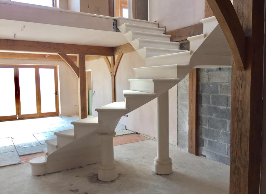 Our floating stone staircases are becoming more and more popular. The thin and light design is hard to rival. Over the last years, we developed a way to create stunning free standing solid stone staircases. To achieve this, we used comen post-tensioning techniques and adapted them to work with our stone staircases. It allows us to create staircases that surprise everyone who sees them for the first time.
