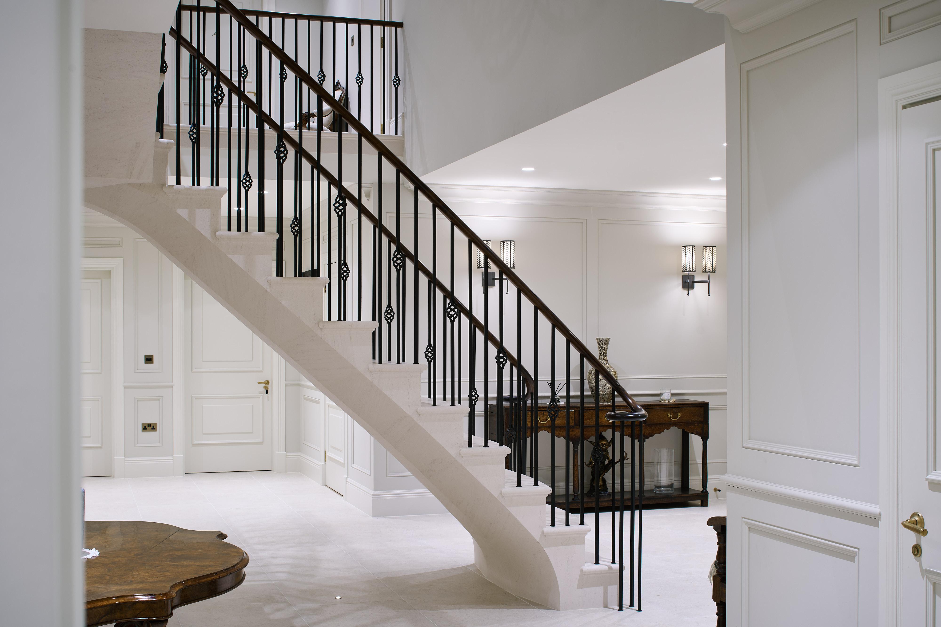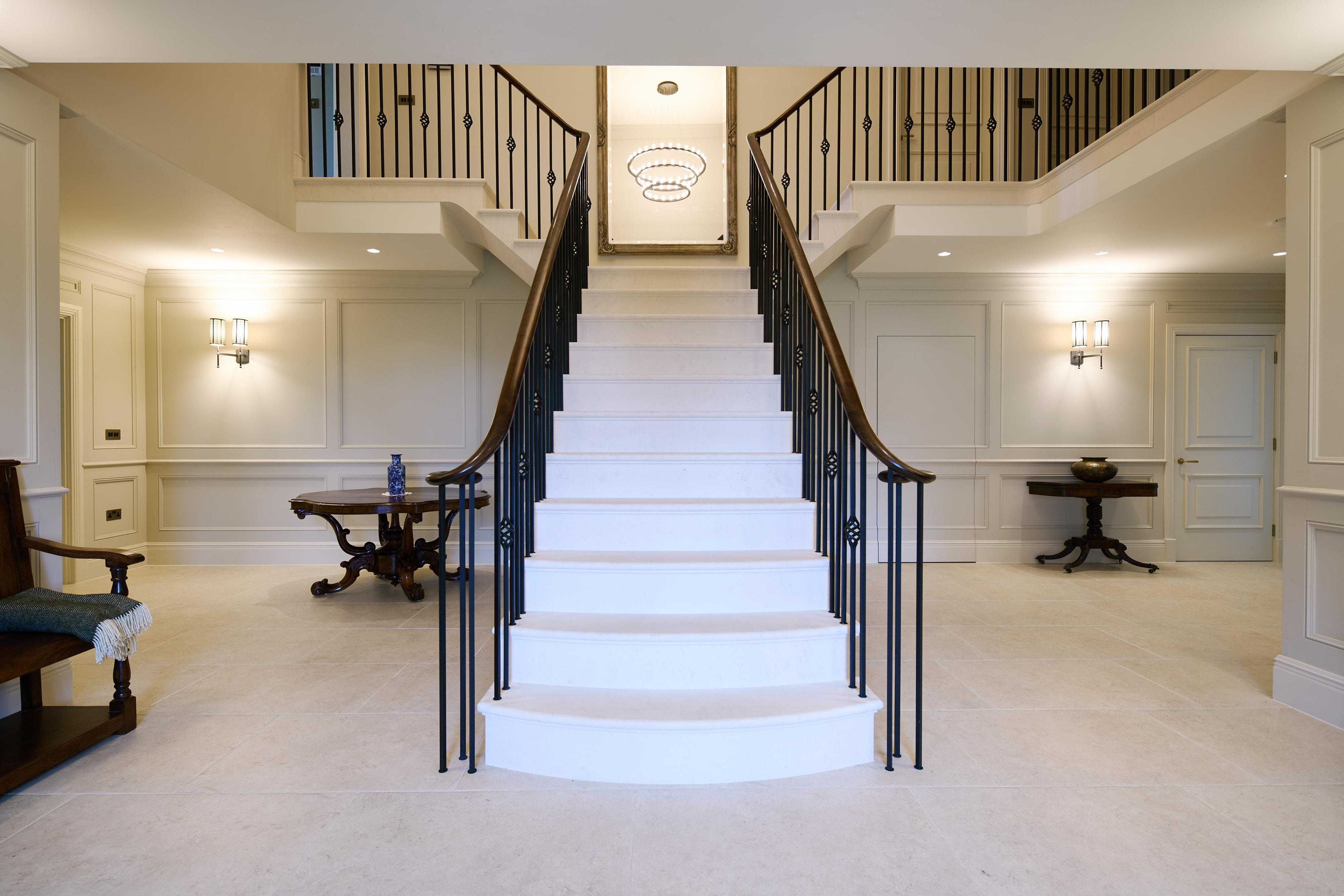 This stunning stone staircase, crafted for a beautiful country house near Solihull, combines timeless design with modern engineering. Using post-tensioned stone techniques, it achieves a graceful, lightweight form while maintaining exceptional strength. A true centerpiece, it brings understated elegance to the entrance hall, seamlessly blending functionality with luxury.