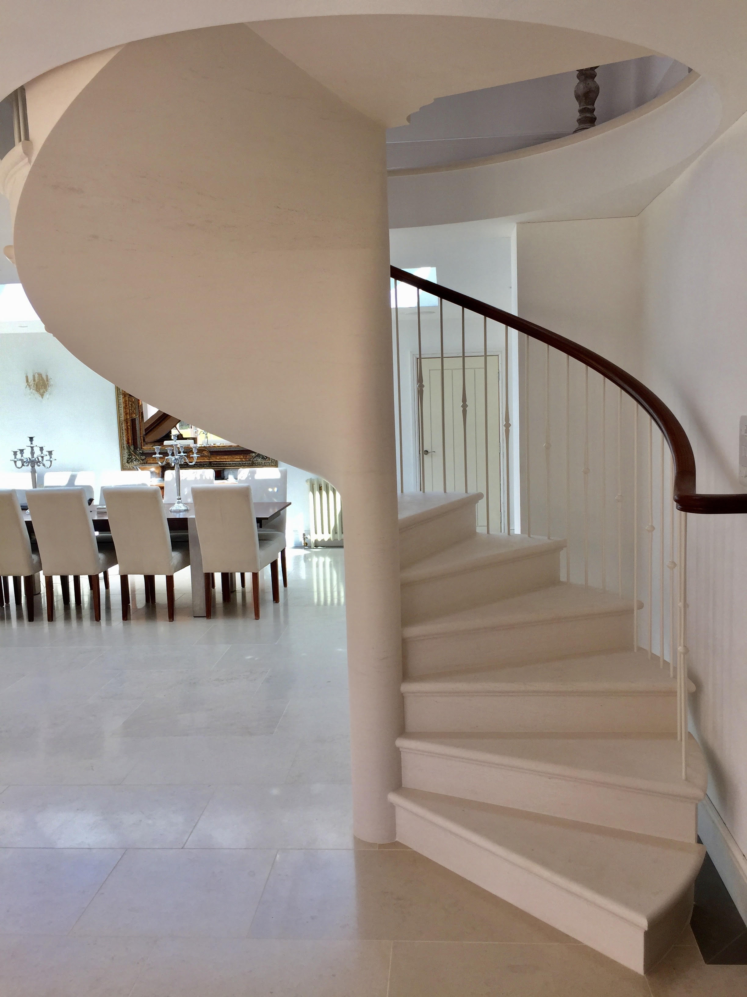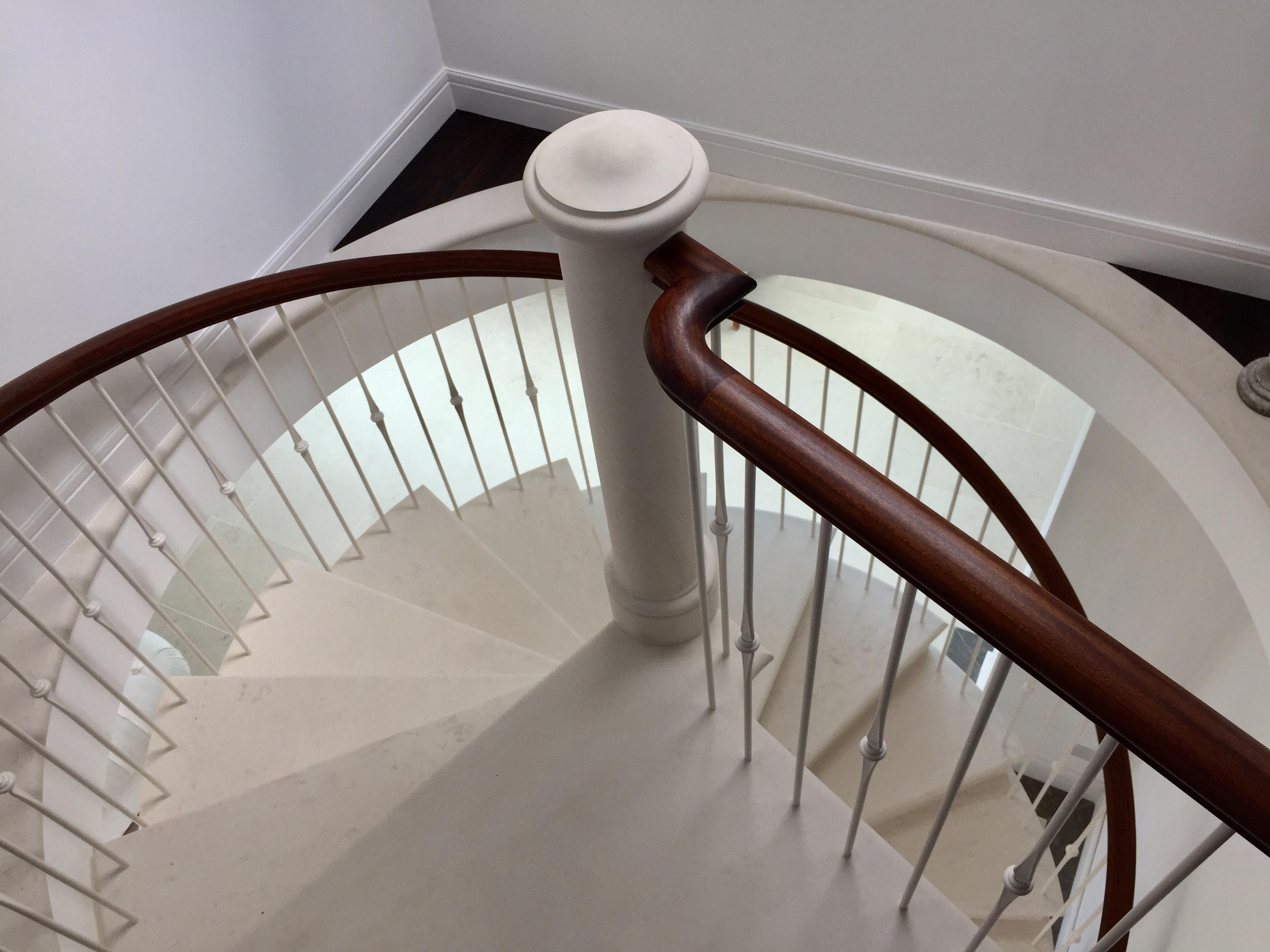 Our free standing spiral stone staircases are one of our favourite staircase designs. There grace and beauty lies in the simplicity of the design. Aesthetically, one of the most important parts of our spiral stone staircases is the soffit. The perfectly honed helix surface is usually the detail everybody is the most surprised and wowed by. A gorgeous design from every angle. Every inch has been thoughtfully crafted from premium stone materials.